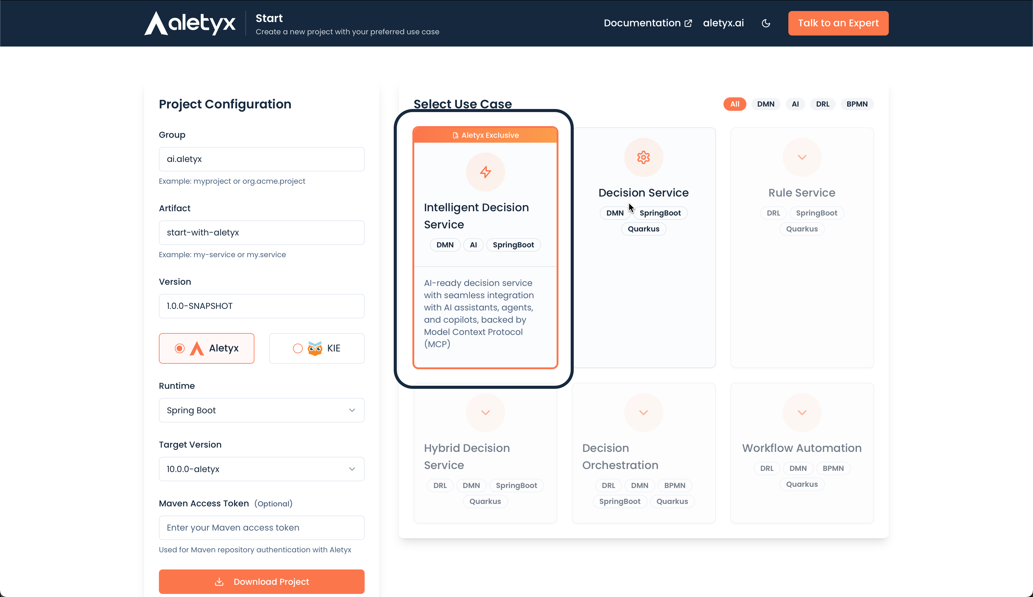 - Visit start.aletyx.ai