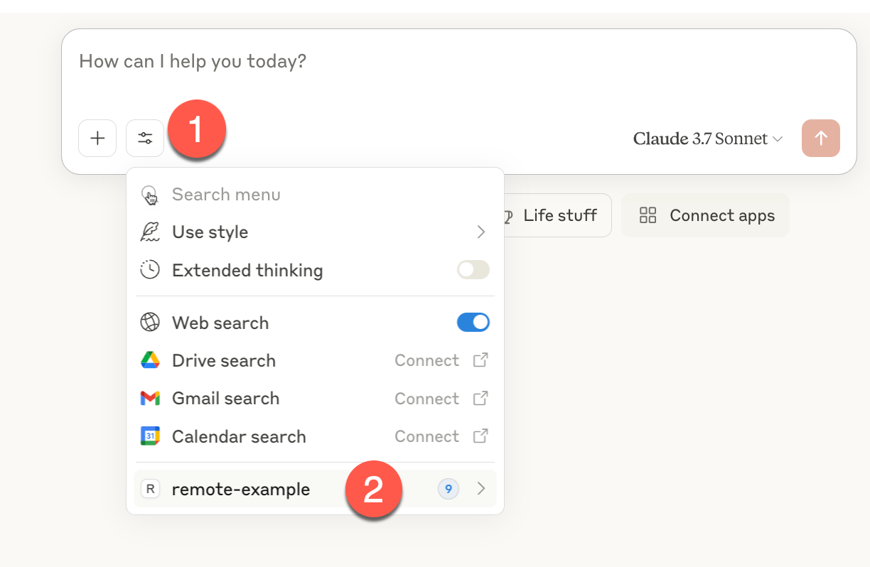 remote-examplewhich is what our properties were configured as).Older versions of Claude Desktop had this as a standalone icon, but this has moved