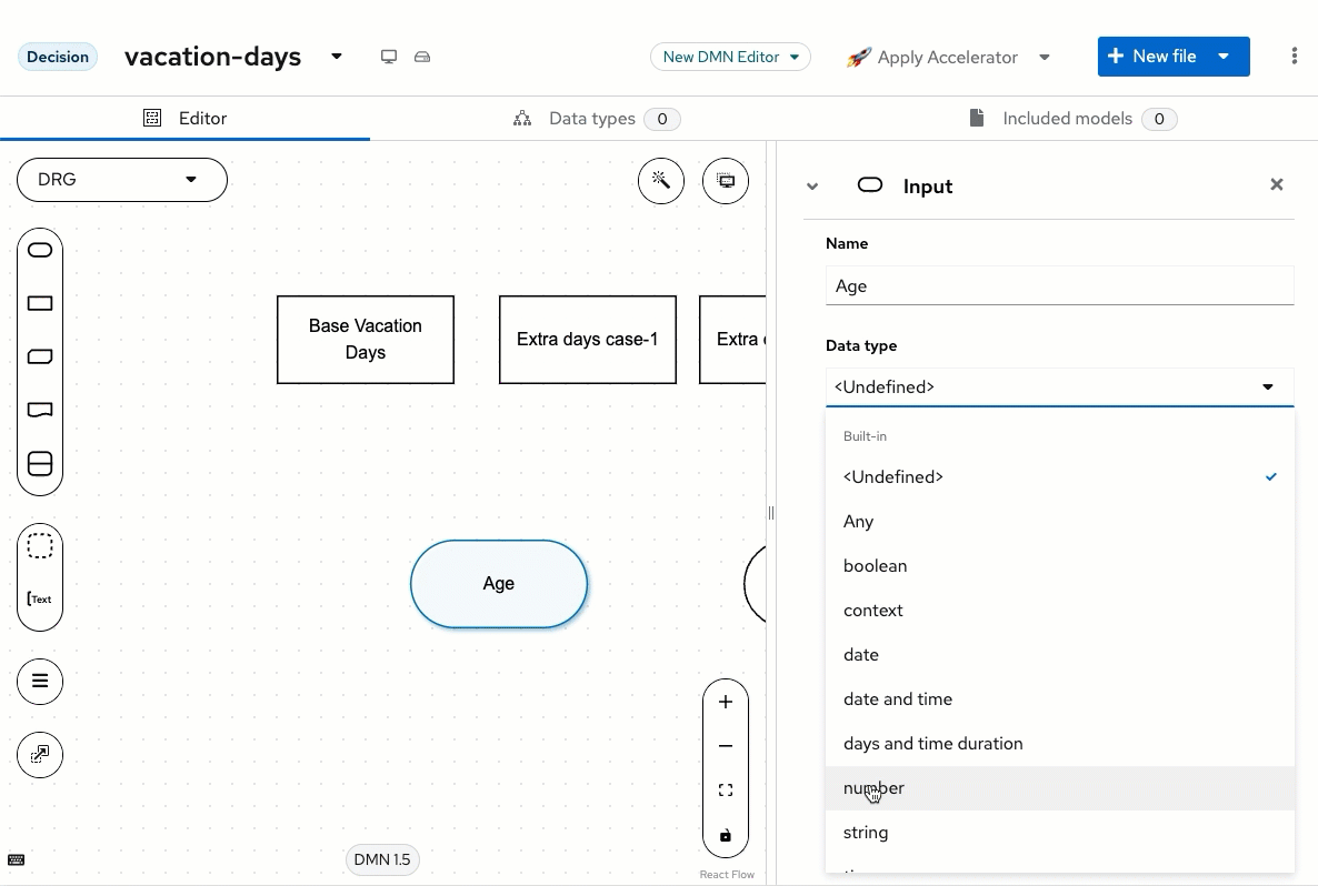 - Clicking Data Types at the top of the DMN model (2)